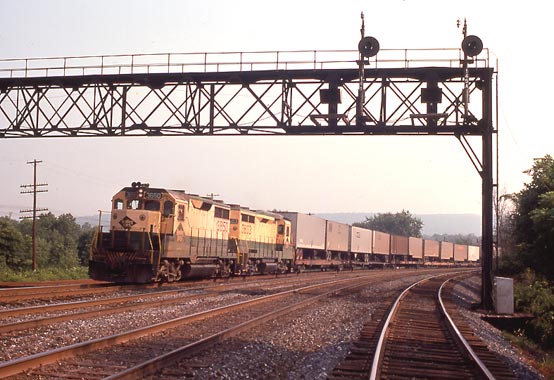RR-1 piggyback train w/b at Perkomein Jct., PA