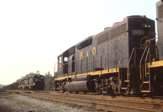 B&O freights meet near Millers, WV, 1978