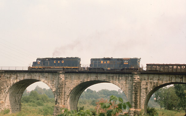 N/b freight on Thomas Viaduct, Relay MD circa 1978