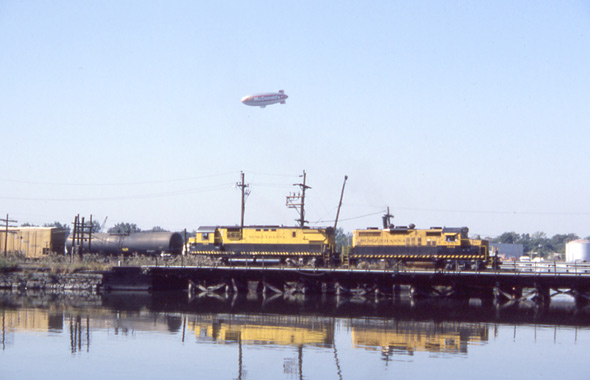Blimp / train meet at Little Ferry, NJ.