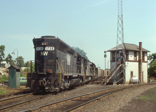 S/b N&W freight with SD45 leaves Hagerstown, VA