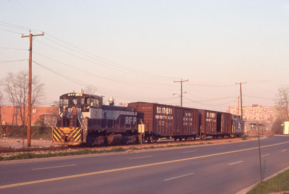 Potomac Yard crew on the Crystal City Spur, with wooden caboose, 1978